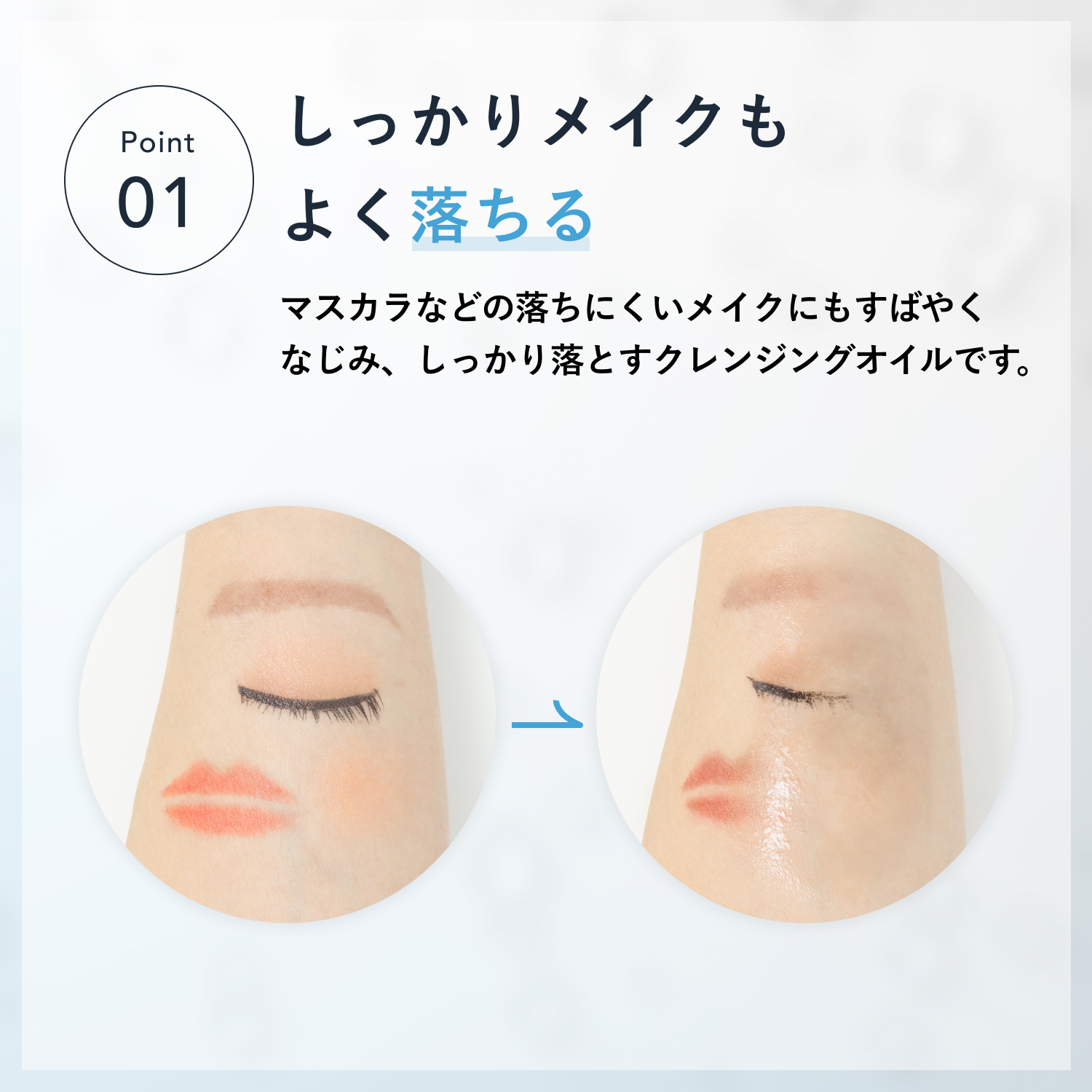 - 【しっかりメイクもよく落ちるメイク落とし】マスカラなどの落ちにくいメイクにも素早くなじみ、しっかり落とすクレンジングオイルです。