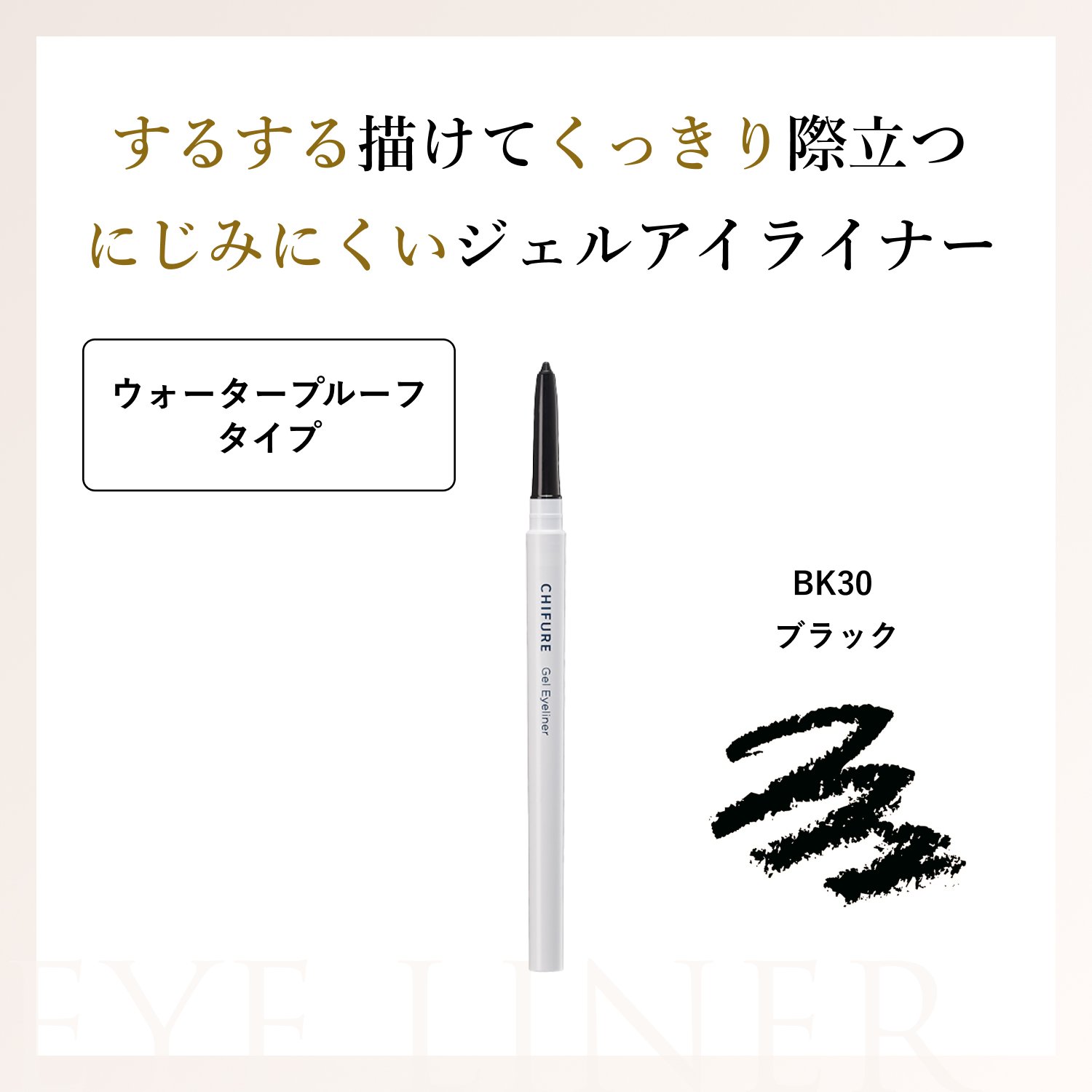 - 【落ちにくいウォータープルーフタイプ】肌にピタッと密着して水・汗・皮脂に強い、長時間美しい仕上がりをキープするにじみにくいアイライナーです。