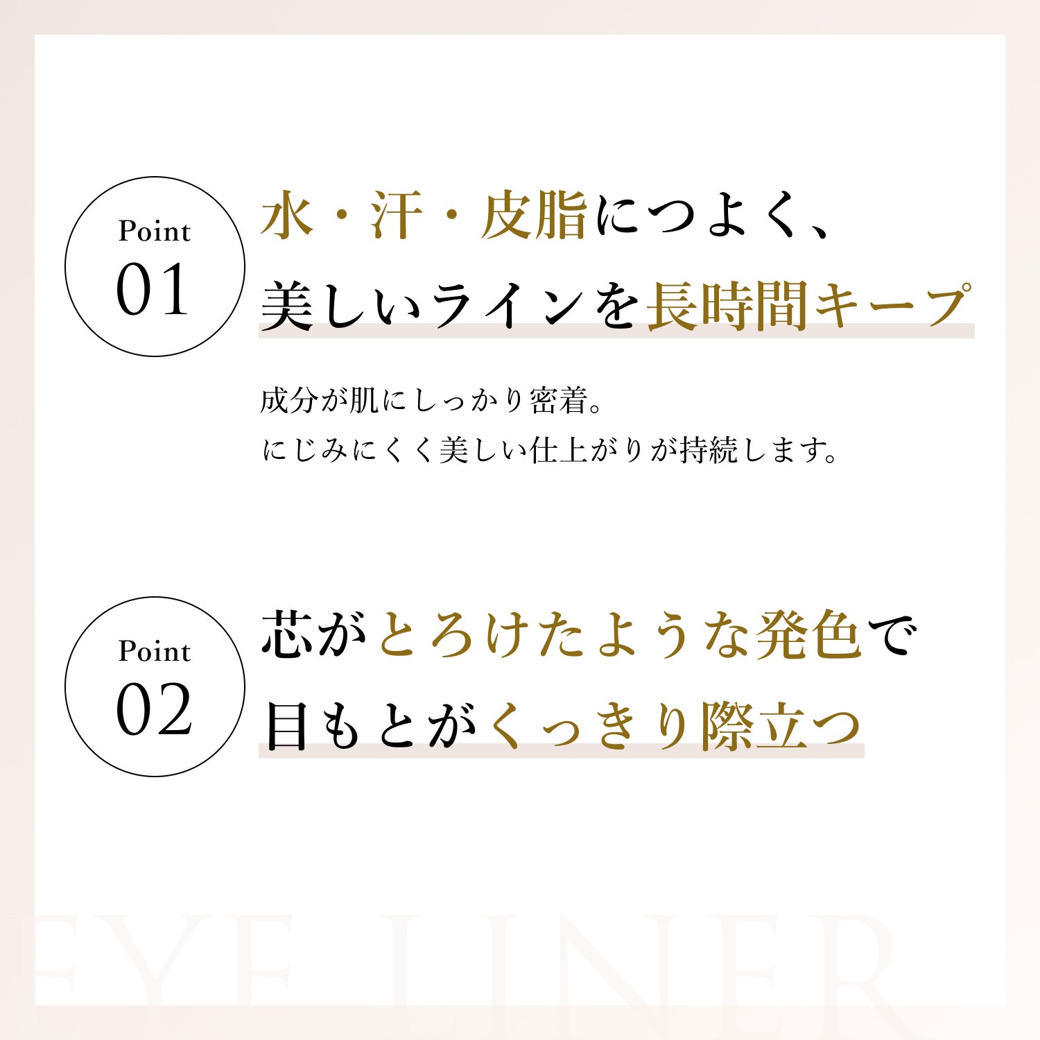 - 【目元がしっかり際立つ】まつ毛の間を埋めやすい太芯タイプで、くっきりとした目元に仕上がります。