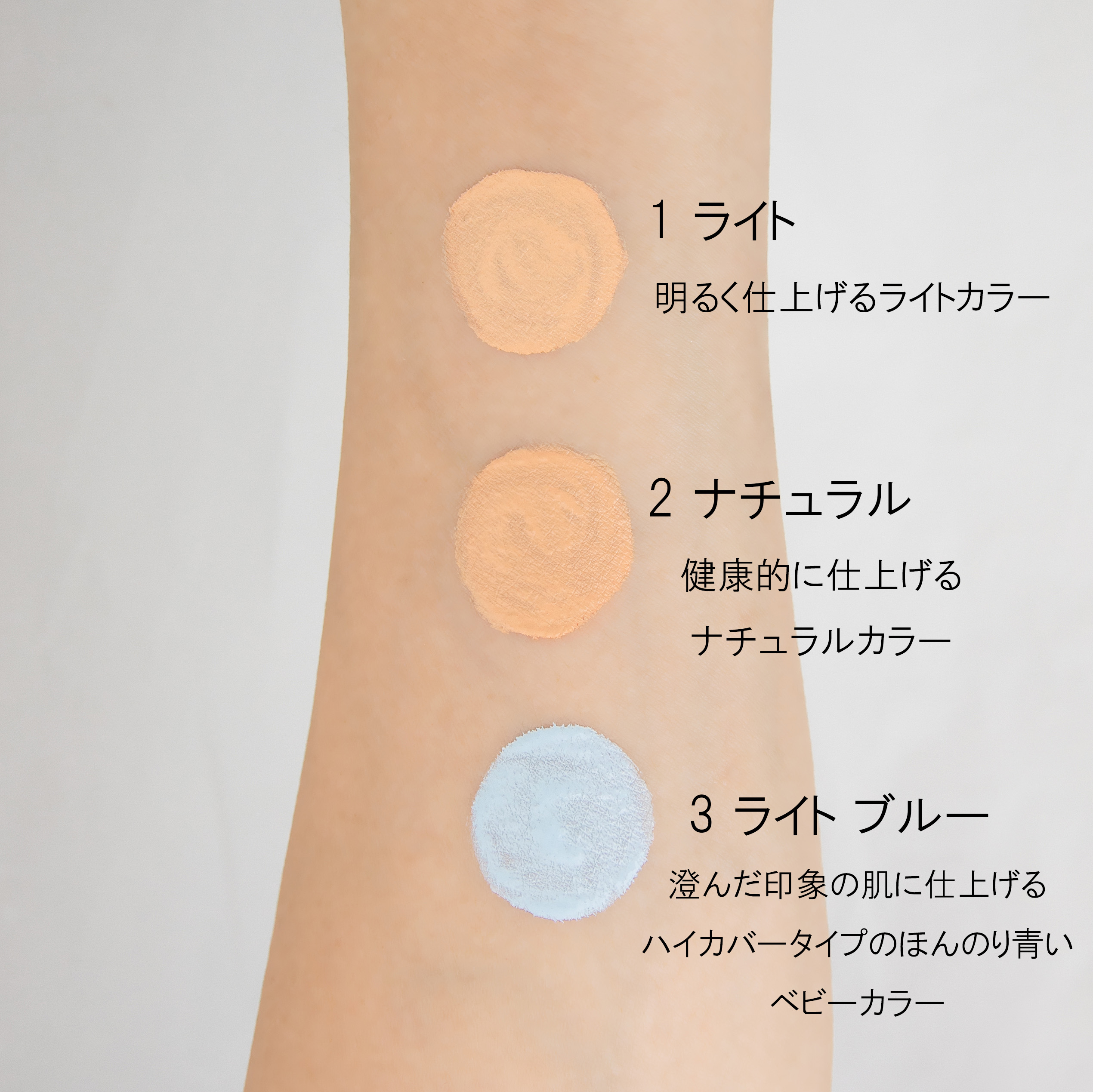 - パウダータイプのファンデーションをお使いの場合はファンデーションの前に、リキッドまたはクリームタイプのファンデーションをお使いの場合はファンデーションのあとにお使いください。