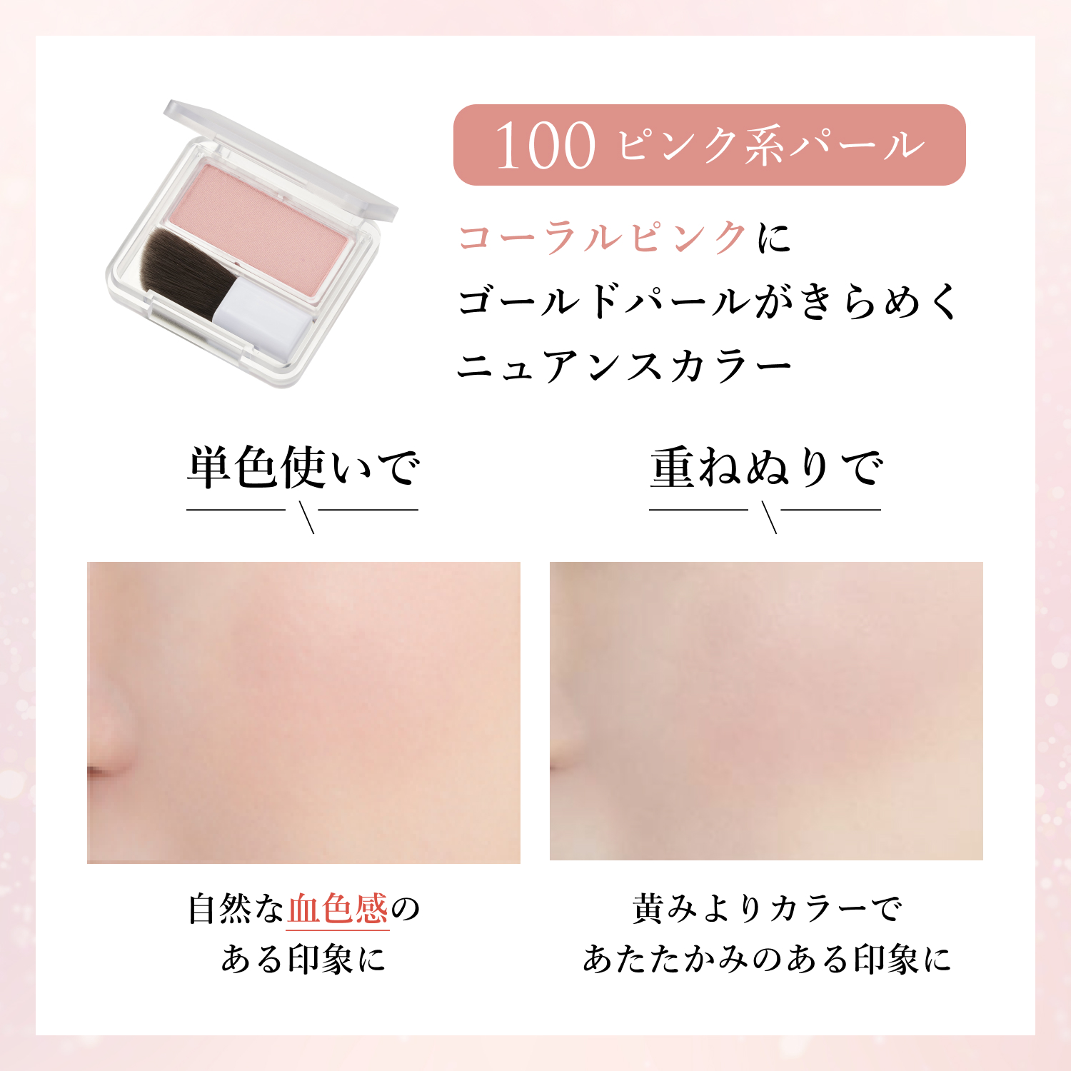 - 【単色でも重ねても】単色使いで自然な透明感のある印象に。手持ちのチークと重ねて使うと、青みよりのカラーにニュアンスチェンジ。