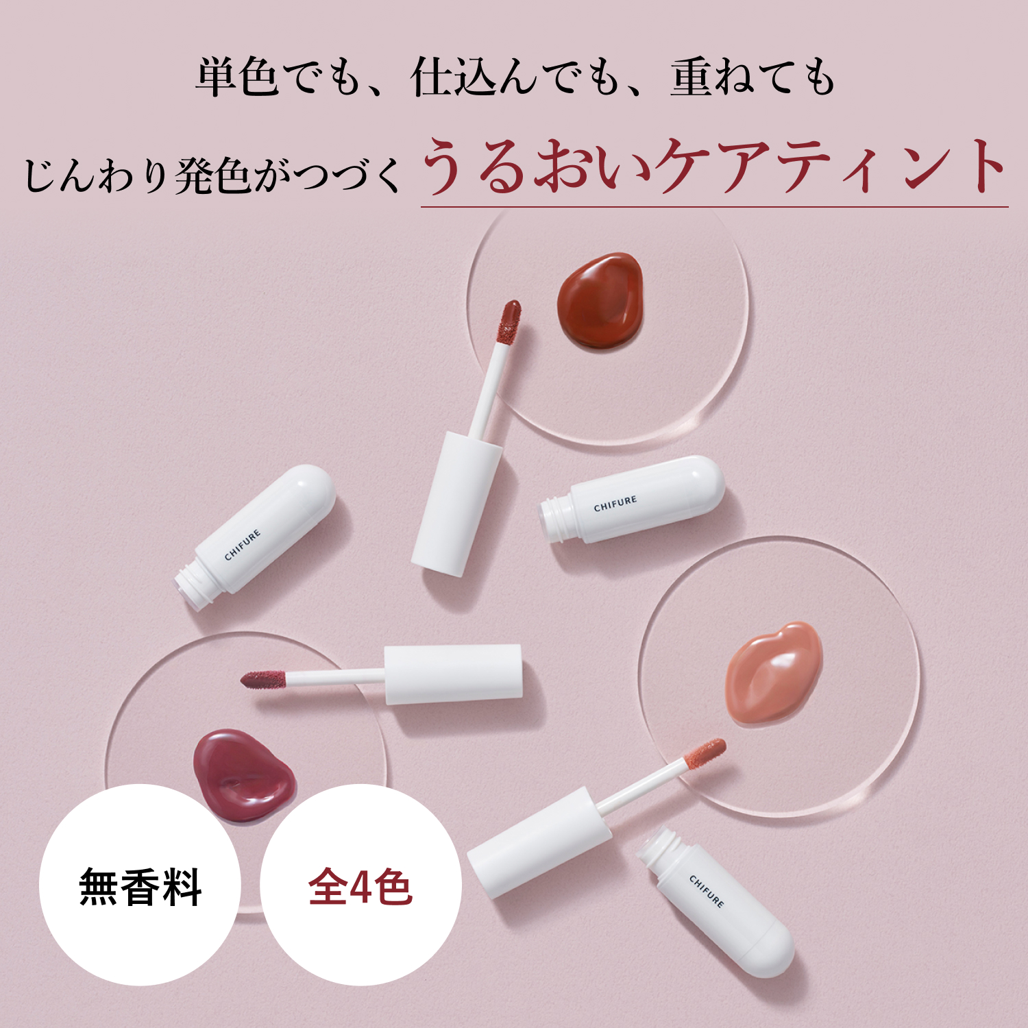 - ぷるぷるジェルのようなつやとうるおい感。じんわり発色がつづくティントリップ。
