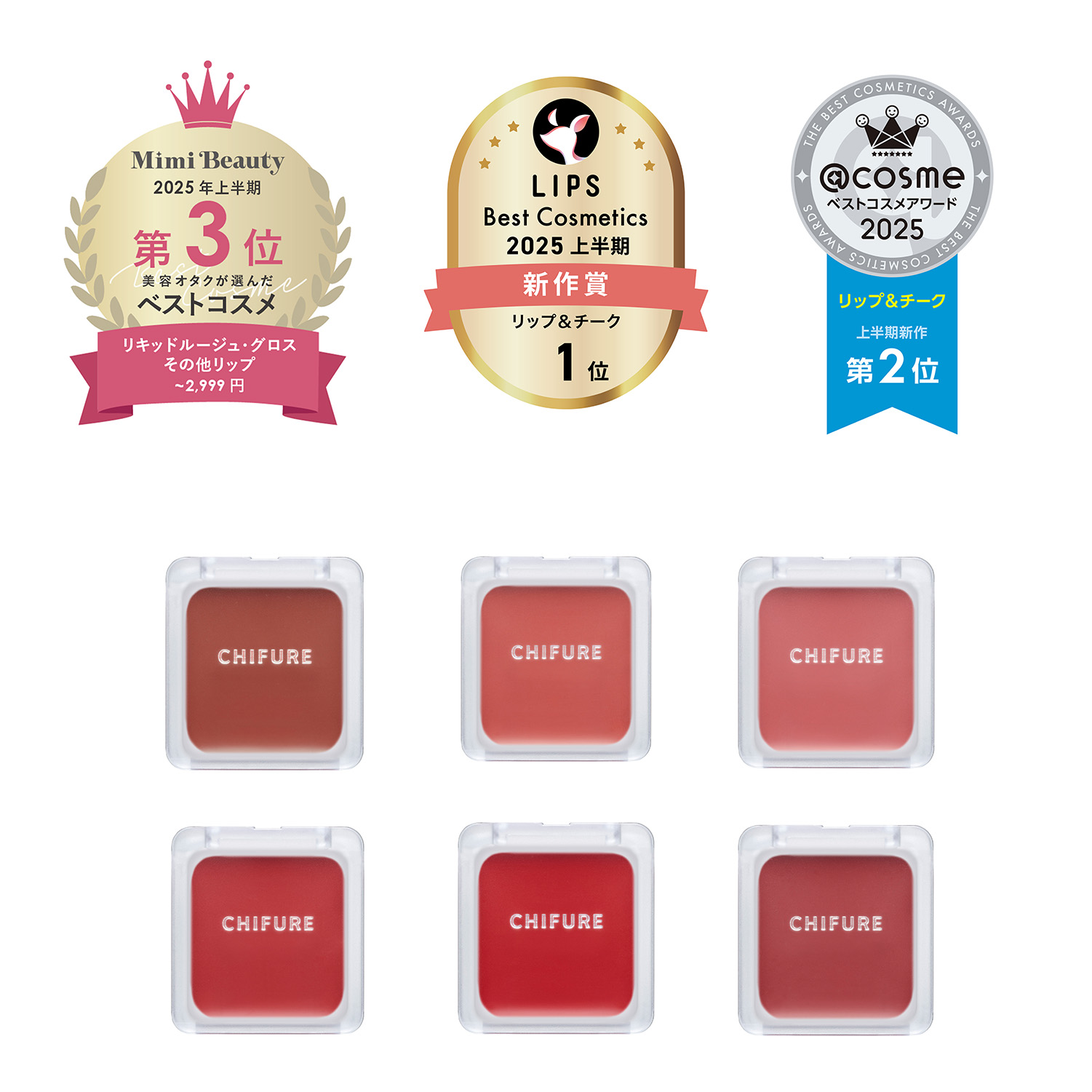 - 「ちふれ リップ & チーク バーム」に、「ちふれ ティント リップ ジェル」を重ねて、つや感アップ。