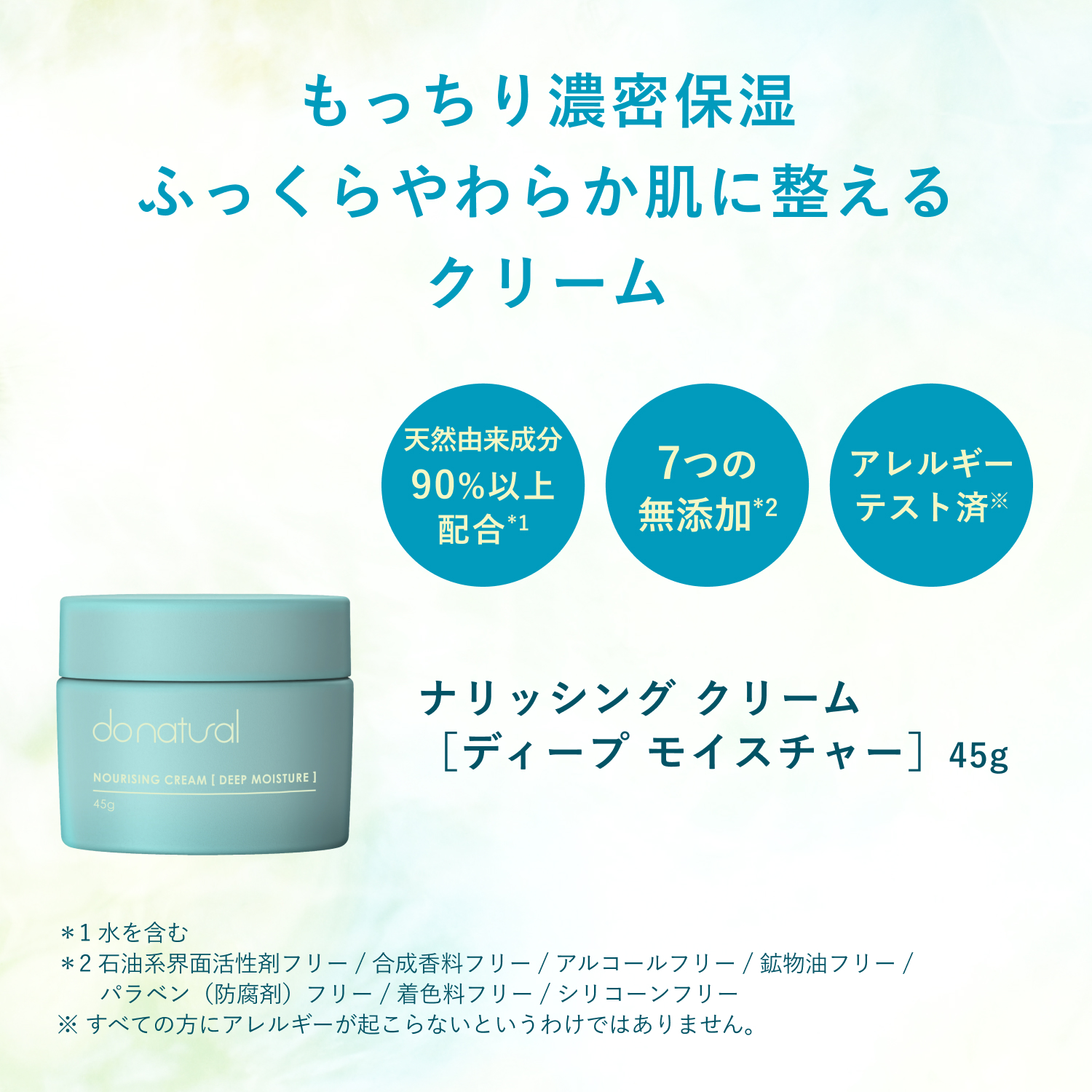 - 【天然由来成分90%以上配合*3のナチュラルコスメ】天然由来成分を90%以上も配合したナチュラル処方。お肌のことはもちろん、これからの環境や社会のことも考えた、サスティナブルなスキンケアを目指しました。