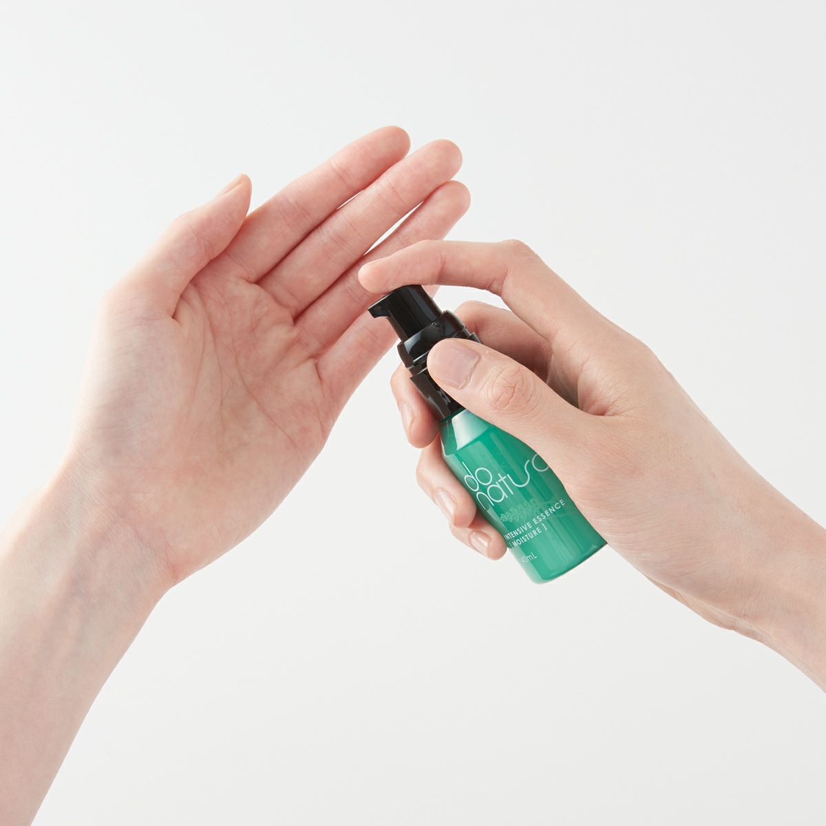 ぎゅっと満ちた植物のうるおいが、やわらかくなめらかにのびて、肌に必要なうるおいをじっくり届けます。