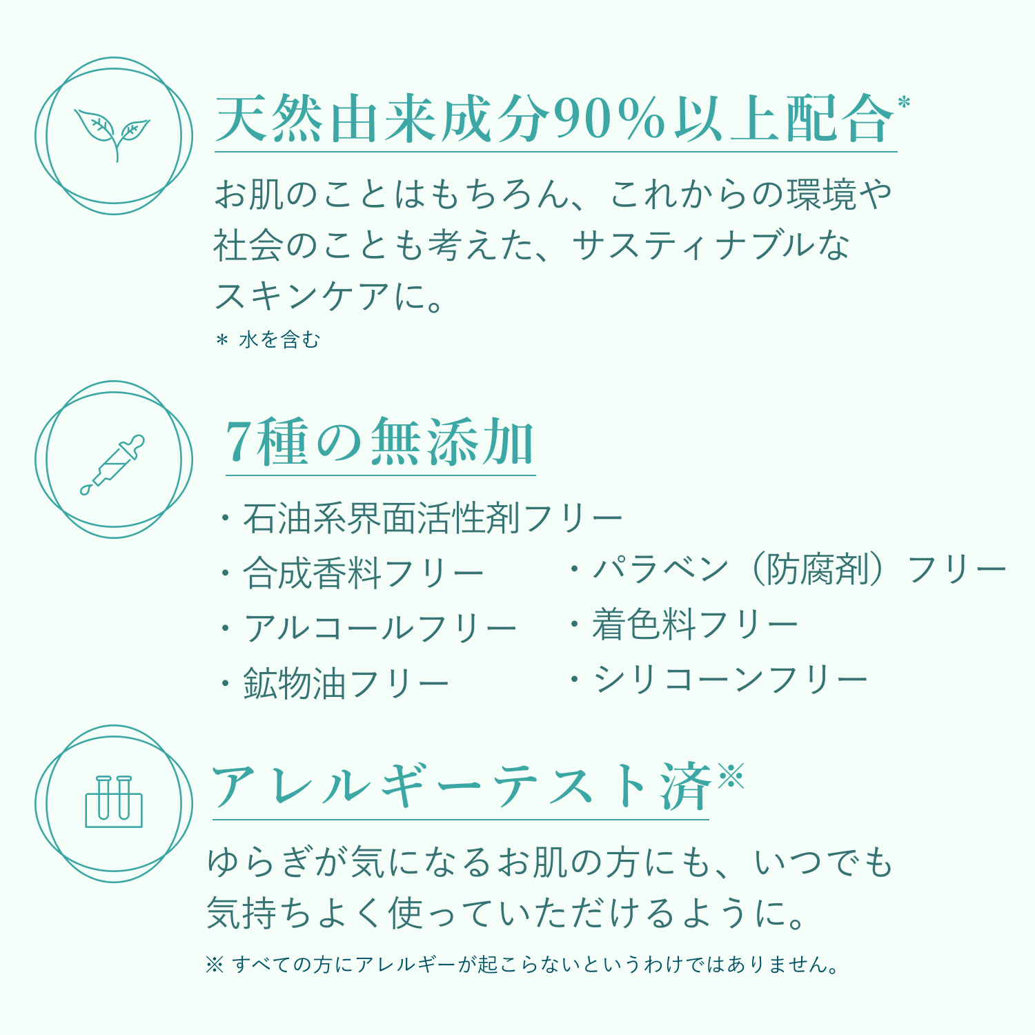健やかな素肌に導くために、必要なものだけを配合。余分なものは取り除き、7つの無添加を実現しました。