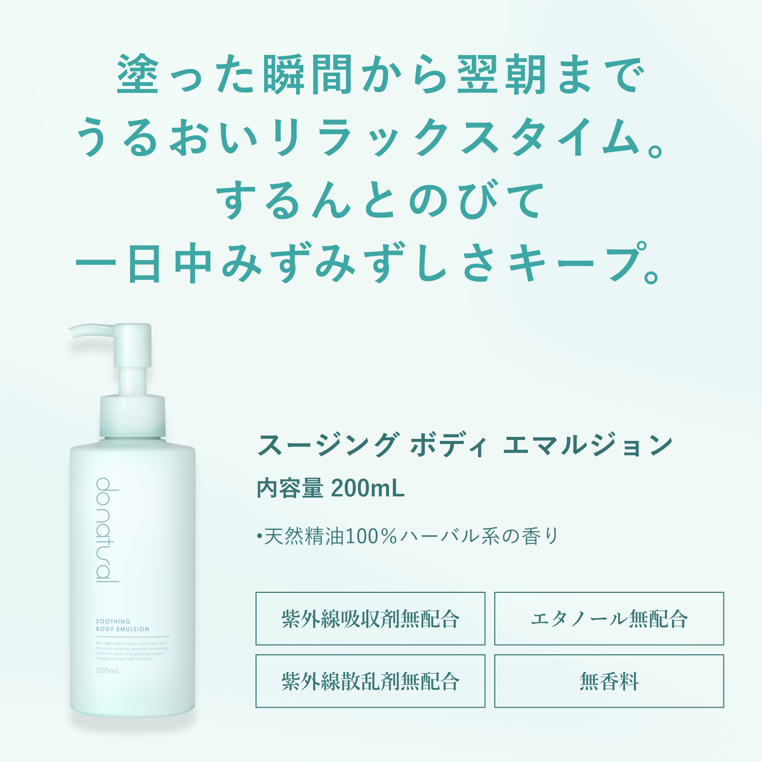 - 【しっとり感続くボディエマルジョン】天然由来のエモリエント成分シアバターが肌温度でとろけてうるおいバリアに。乾燥による肌あれを防ぎます。