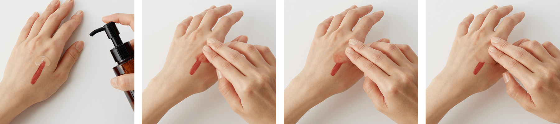 - メイクとよくなじんだら、水またはぬるま湯で洗い流します。