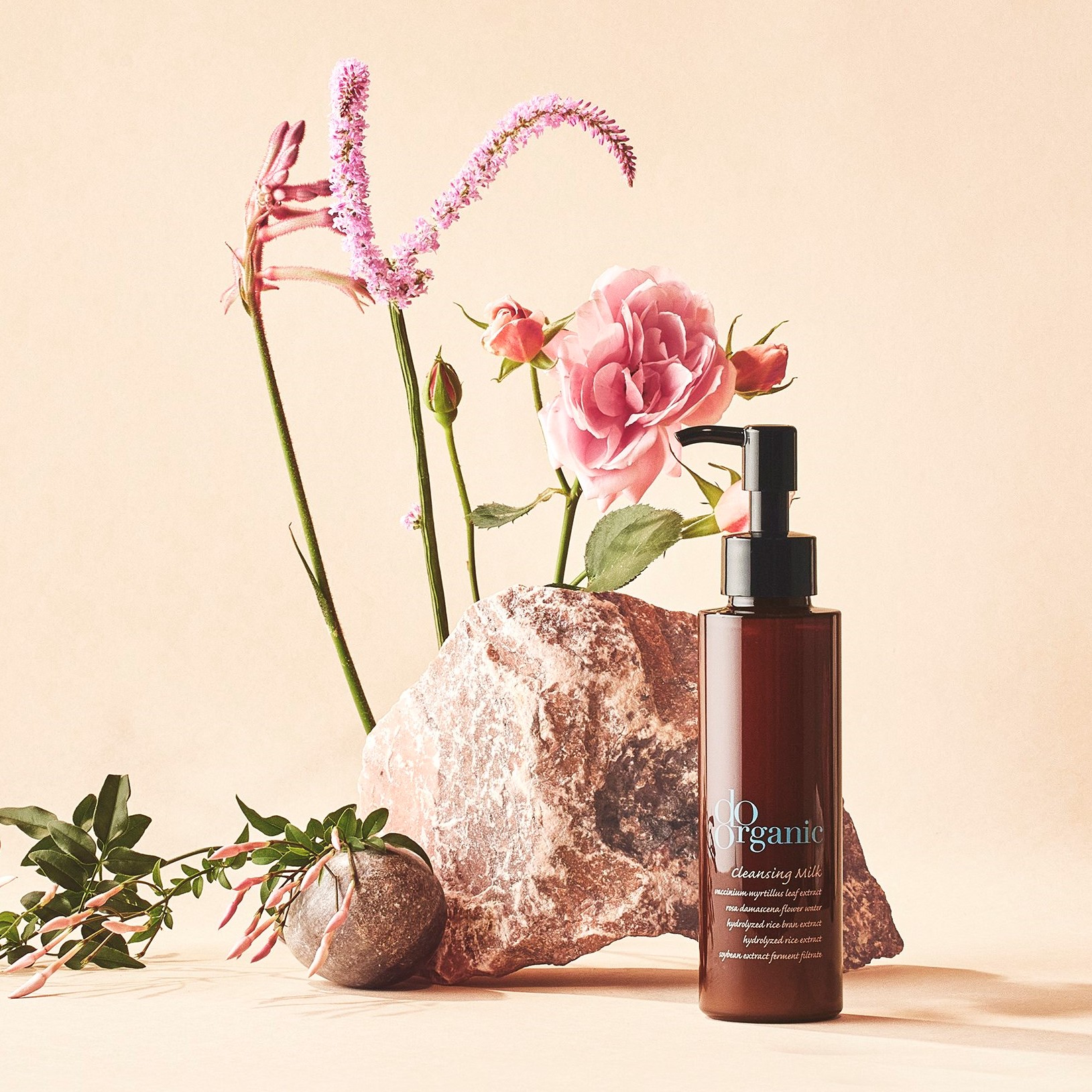スピーディーにすすげてしっとりうるおう、ミルククレンジング。メイク落としで大事なことは、こすらずきちんとメイクがオフできること。ドゥーオーガニック クレンジング ミルクは、メイク落ちの良さにこだわり、落ちにくいメイクを浮かせてするっとオフします。ヌルつき感が残らず、すすぎもスピーディーでW洗顔も不要。メイクよごれはきちんとオフしながら、洗い上がりはつっぱらず、しっとりなめらかな肌に。オーガニックフローラルの香りが、メイクオフタイムを華やかに彩ります。