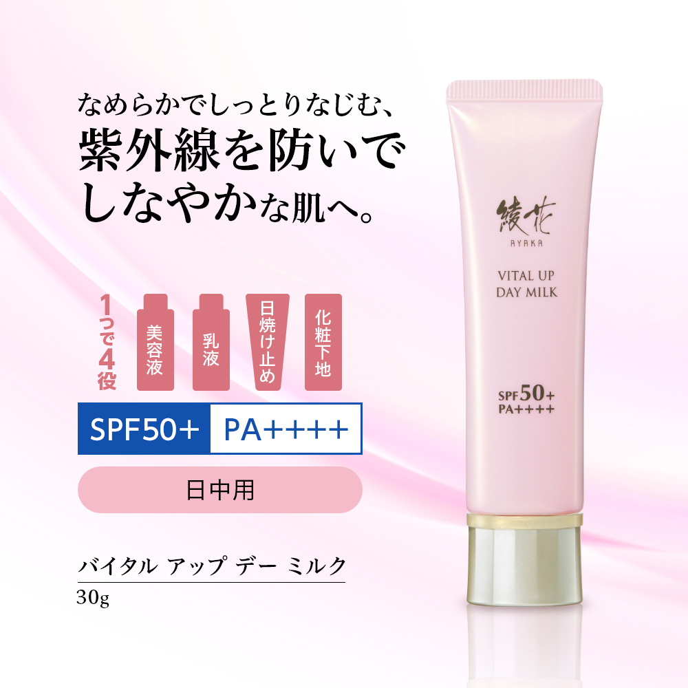 - 美容液・乳液・日やけ止め・化粧下地、4つの役割をもった日中用乳液。