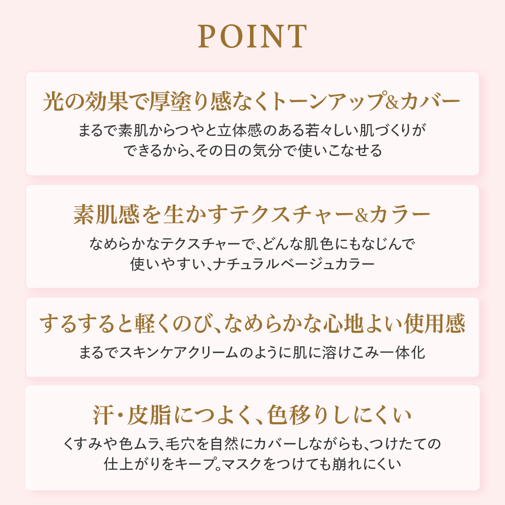 - 化粧下地として、ファンデーションの前にもお使いいただけます。