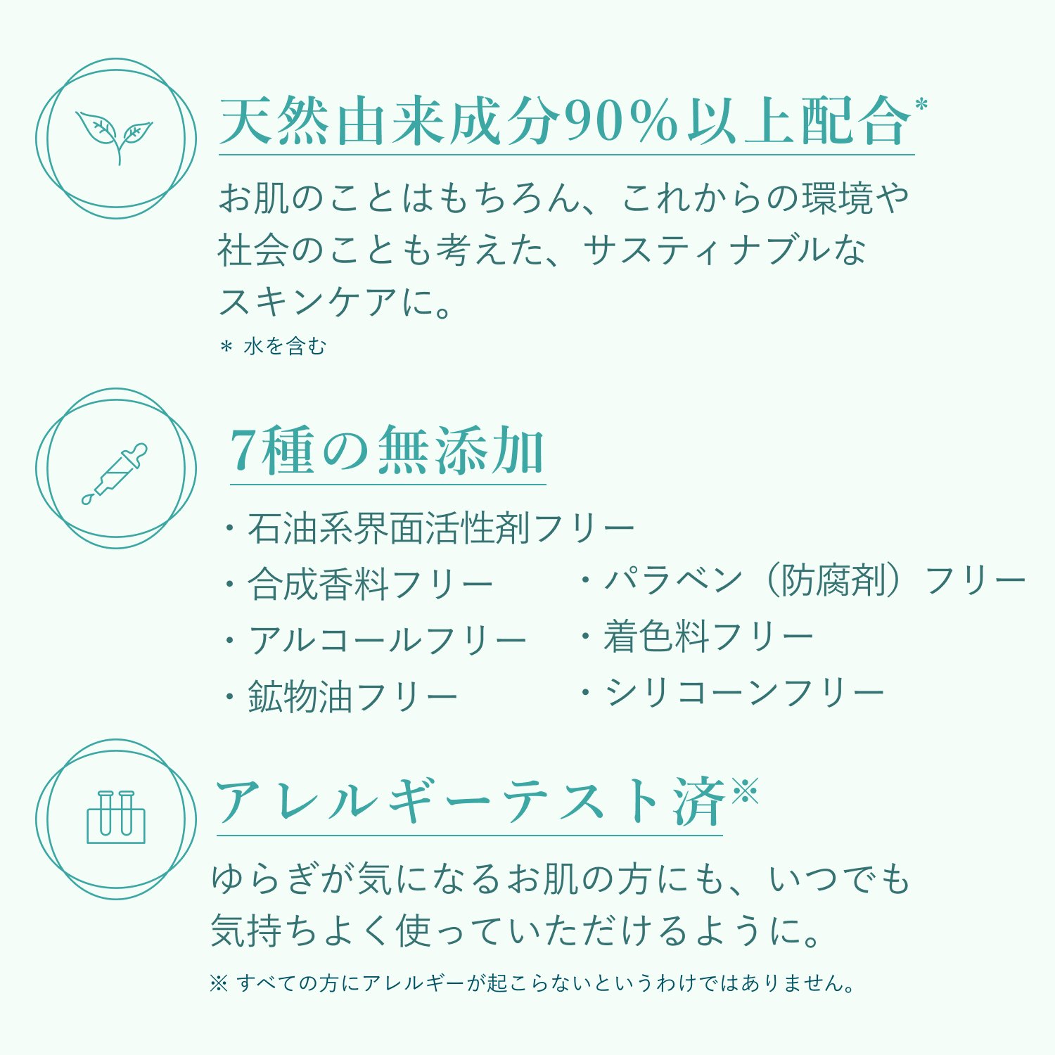 健やかな素肌に導くために、必要なものだけを配合。余分なものは取り除き、7つの無添加を実現しました。