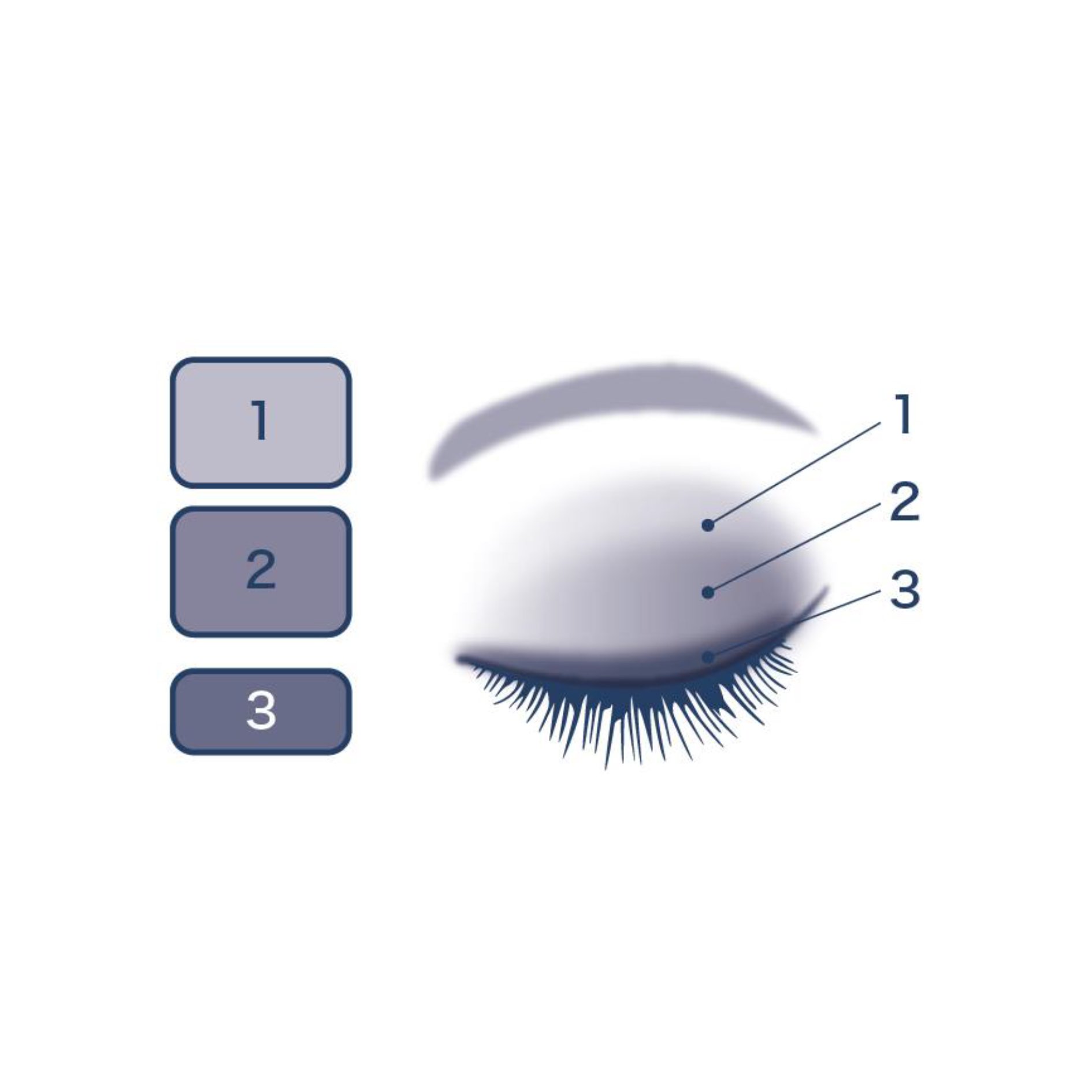 • ミディアムカラー(2)をブラシまたはチップにとり、目の際から上に向かってぼかします。