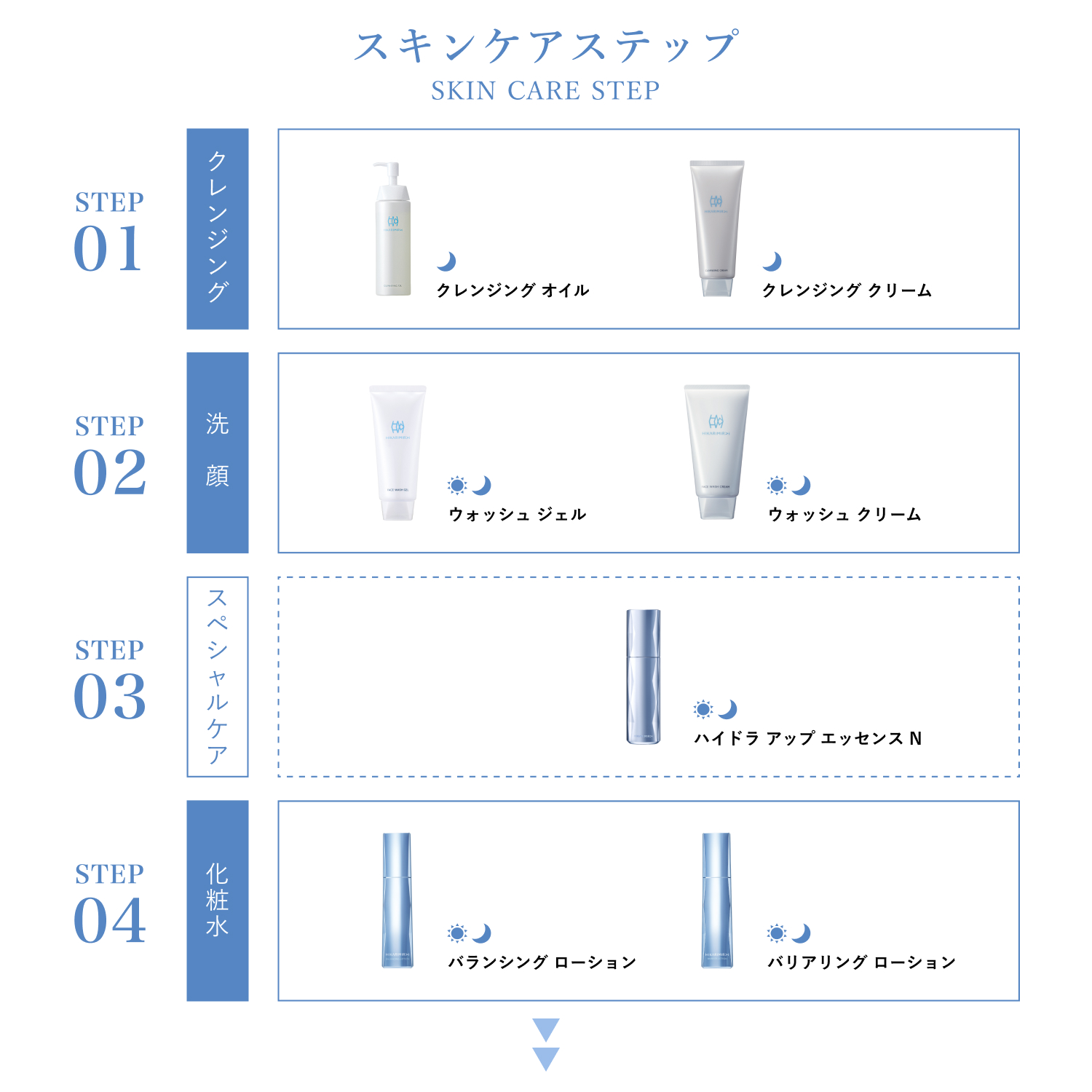 - 化粧水のあと、適量(1~3回押し程度)を手にとり、手のひらで引き上げるようにしてなじませます。