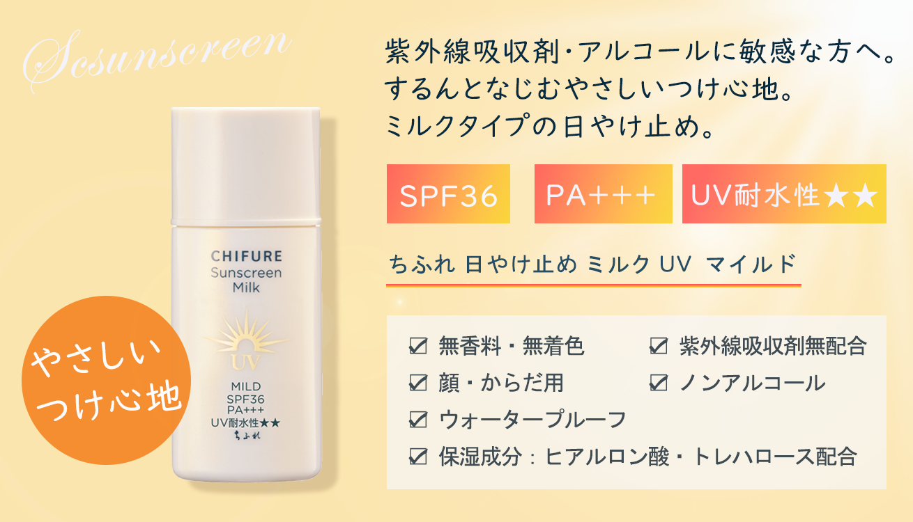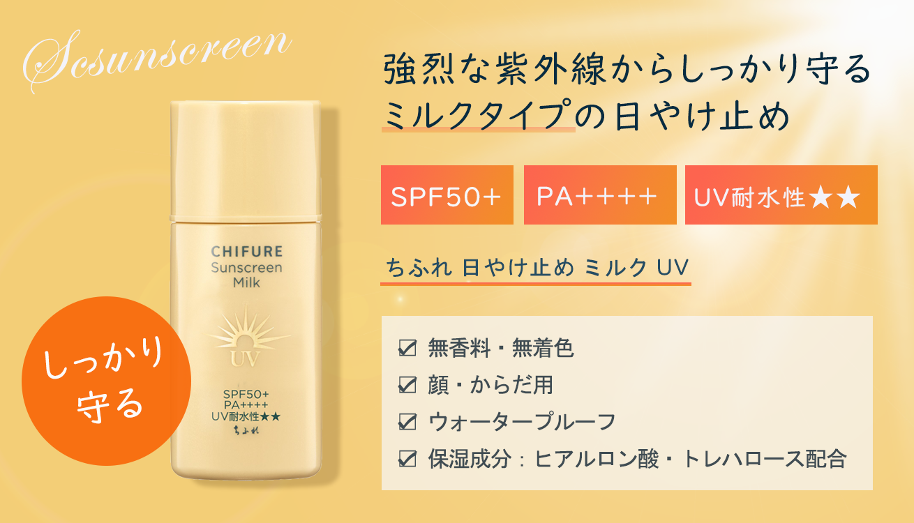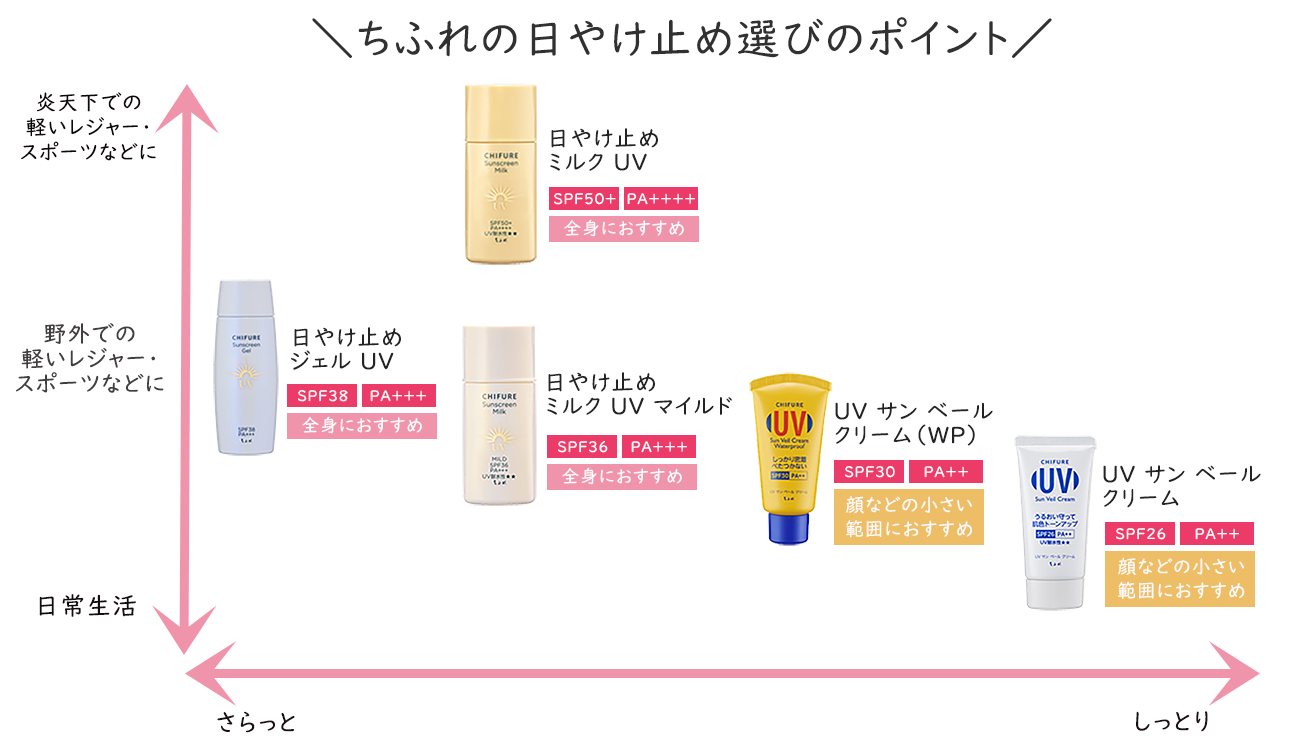 ちふれグループでは様々なタイプの日やけ止めをご用意しております。
