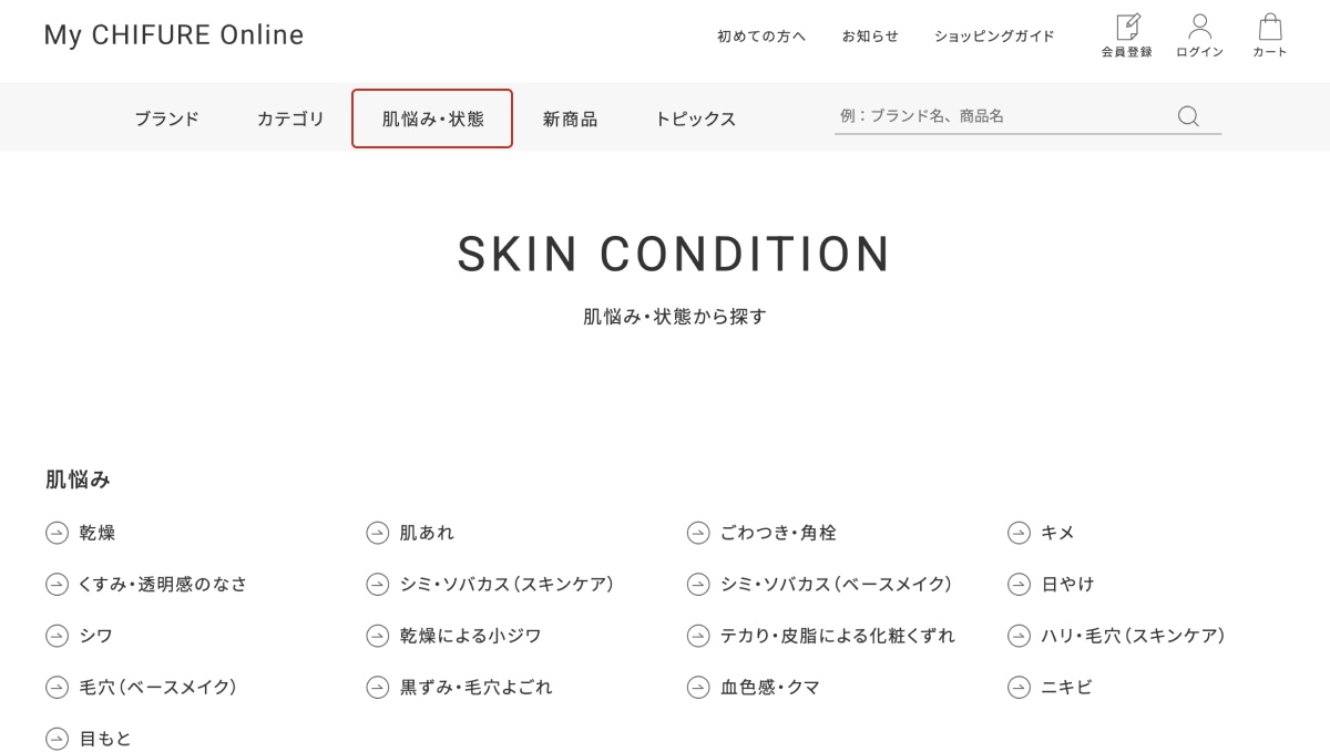 My CHIFURE Onlineでは肌悩みに沿って商品をお選びいただけます。
