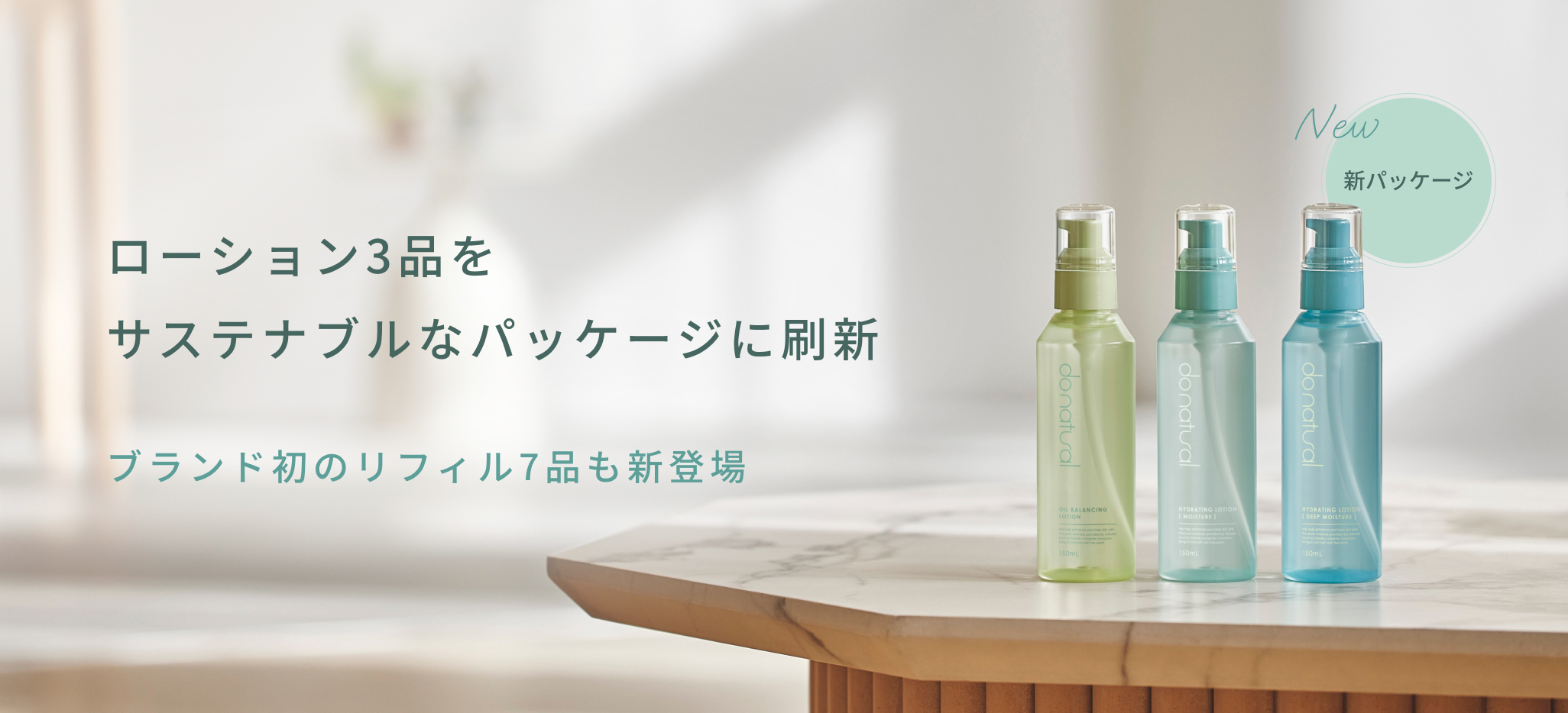 do naturalブランドにおいてローション(化粧水)3品を成分・処方はそのままに、パッケージを刷新するほか、ローション(化粧水)や乳液等の7品においてブランド初となるリフィル(詰替用)を発売いたしましたので、ご紹介いたします。