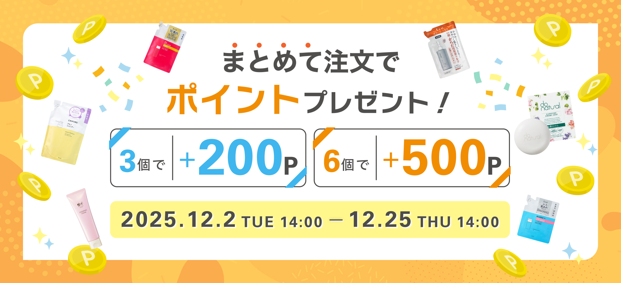期間中、対象商品をお買い上げのお客様に、通常ポイントに追加でポイントをプレゼント!