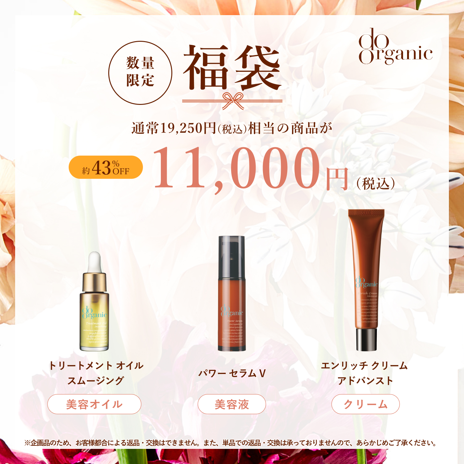 今年も国産オーガニックコスメブランドdo organicから福袋が登場!美容液・保湿クリーム・美容オイルが入ったお得なスキンケアセット「ドゥーオーガニック ハッピーバッグ2026」