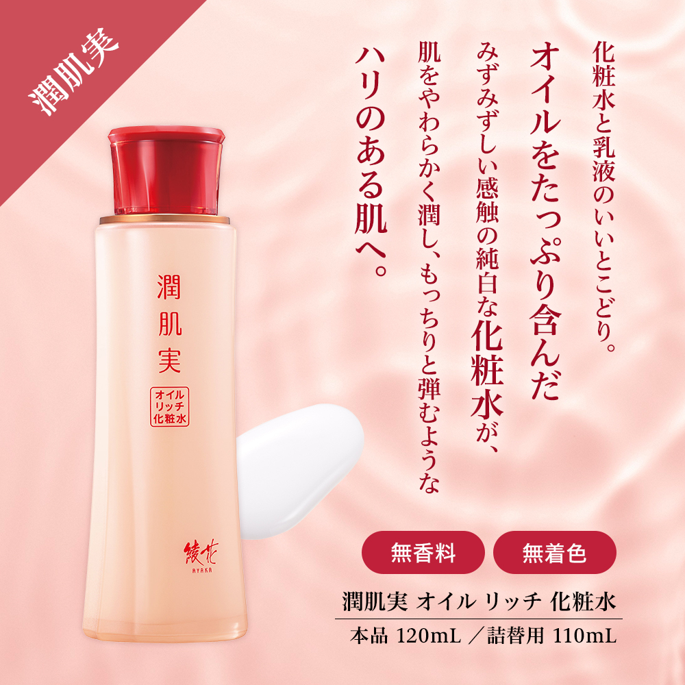 - 【年齢を重ねた肌特有の「乾燥」原因に着目】潤肌実スキンケア共通成分*2(保湿成分)配合。年齢を重ねるにつれ、肌の水分量や油分量が低下したり、ターンオーバーが乱れたりすることによって、角層が厚くなる「肥厚化」が起こりやすくなります。「肥厚化」が起こると、水分を与えても角層のすみずみまで届きづらく、潤いを感じにくくなったり肌がくすんで見えます。エイジングケア*3ラインの潤肌実では、年齢を重ねて乾燥が気になる方の肌へ向けて、たっぷりの水分と油分を与え、しっとりやわらかく潤いあふれる肌を目指します。